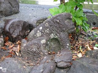 体つきは江戸狛のような、しかし顔は如何にも鄙びたおじさん顔です。拡大写真はこちら。