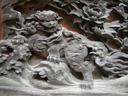 拝殿の透かし彫りにもこんな狛犬が