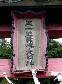 この神社は東武佐野線・多田駅と葛生駅の中間あたりの国道293号線から、ほんの少し西に入った所に鎮座しています。永享6年(1434)に創建され、宗像三女神の一柱である市杵島姫が御祭神です。市杵島姫は美人のほまれ高く、弁天様に見たてられている神様で、海上交通、戦の神であるとともに、その御神徳により子供の守護神と仰がれています。又この神社は、厳島神社の御祭神を祀っている為、昔は厳島大明神と云われていたのでしょう、今でも通称明神様と呼ばれているようです。
