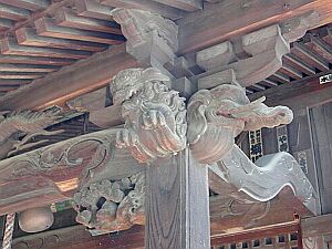 | 拝殿の木鼻、狛犬と象 | 河岸の様子を描いた絵馬 「工事落成之図」 |