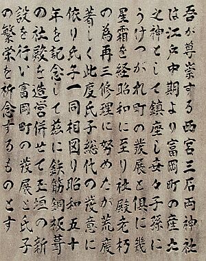 西宮・三石両神社は江戸中期より富岡町の産土神として鎮座しています。昭和50年に社殿を造営し併せて玉垣の新設をしました。
