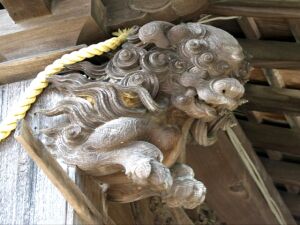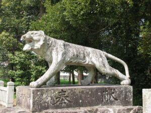 | 境内社・稲荷神社 | 一頭だけの虎像 |