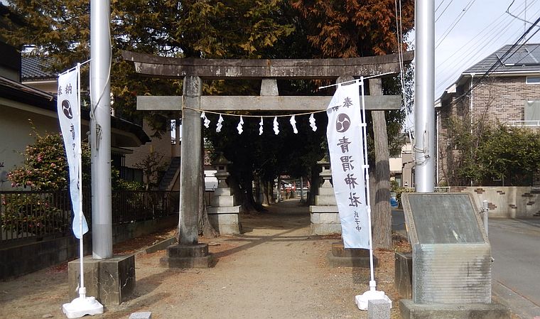 この神社は、JR南武線・稲城長沼駅の南南西200m程の辺り、東長沼の街中に鎮座しております。平安時代に編纂された延喜式神名帳に記載があるとされる古社で、昔は神社の付近に大きな青い沼があり、その神霊を祀ったことが起源とされていることから、青沼大明神とも言われています。10月上旬の例大祭では、江戸時代から伝承されている稲城市指定文化財の「青渭神社獅子舞」や青渭囃子などの郷土芸能が奉納されます。