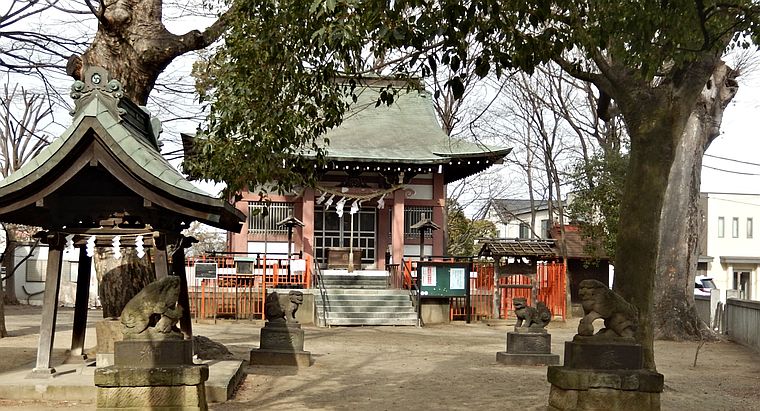 当社創建の年代は不詳であるが延喜式神名帳所載の多摩八座の一社であると伝えられる。当社の鎮座池には往昔、大なる沼の有りて「大沼明神」「青沼大明神」と称された。例大祭には青渭獅子舞の神事が奉納される。