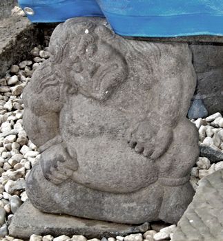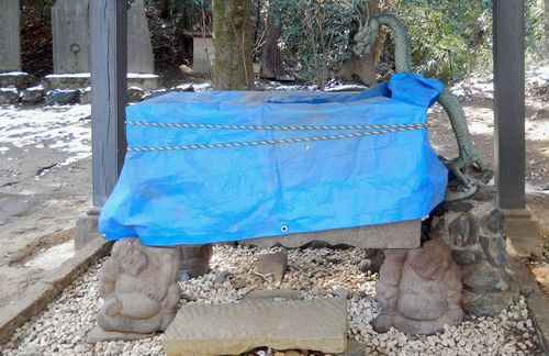 手水鉢を支える力士