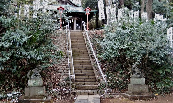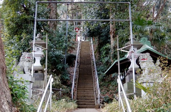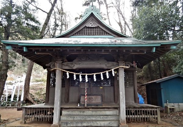 この神社は、JR南武線・南多摩沼駅の南南東400m程の辺り、大丸の街外れに鎮座しております。平安時代に編纂された延喜式神名帳に記載があるとされる古社で、鳥居をくぐり境内へと続く長い石段を登ると神秘的な空間が広がります。境内社として津島神社、白山神社、神明神社、稲荷神社、秋葉神社が祀られています。幕末期に建立された本殿には、軸部、壁面をはじめ豪華な彫刻が施されていて、当時の職人の技術の高さがうかがえます。