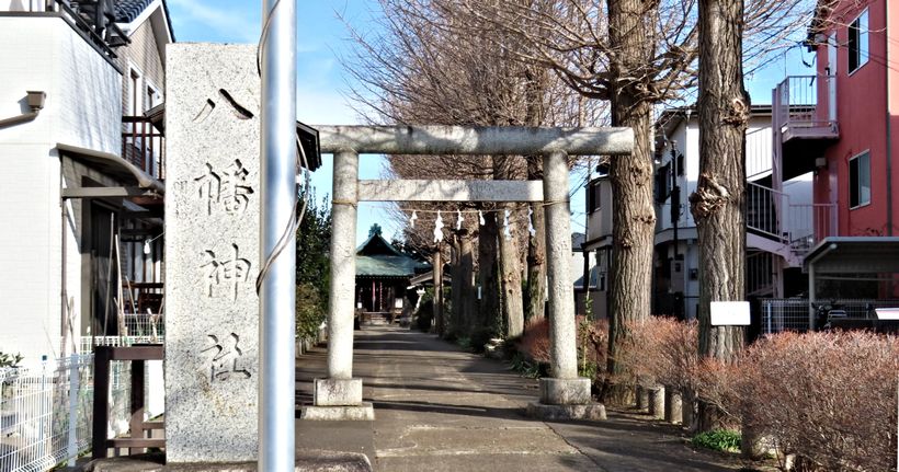 八幡神社は、品陀和気大神を祭神とする小足立の鎮守です。創建は明らかではないが、元禄10年1697の小足立村検地帳に「八幡宮」と見え、江尾時代後期の地誌「新編武蔵風土記稿」にも「八幡社」として記載されており、江戸時代には創建されていたことが知られます。