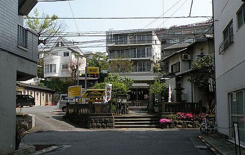 この神社は、目白通りを東へ進み、音羽の谷底へ落ち込んだ目白坂下交差点のすぐ東側に鎮座しております。地下鉄有楽町線・江戸川橋駅に近いこの辺りはビルやマンションが立ち並び、それらの谷間に埋もれるように社殿が建っています。