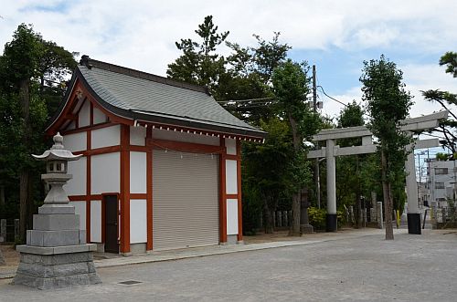 「環七通り」と「奥戸街道」が交差する所、「奥戸陸橋下」交差点より東北へ徒歩数分の所に鎮座しています。近くを新中川が流れています。