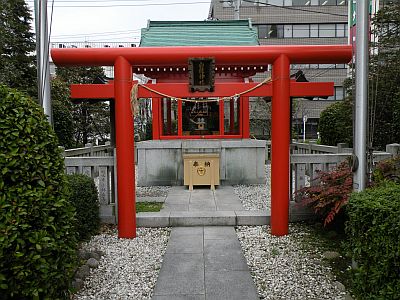 この神社は、王子駅の北1.5km程の辺り、紀州通り南側に、通りに背を向ける、南向きに鎮座しております。独立した社地を持つ神社では無く、サミットストアーの敷地内に鎮座する屋敷神と言うか、企業内神社のようです。