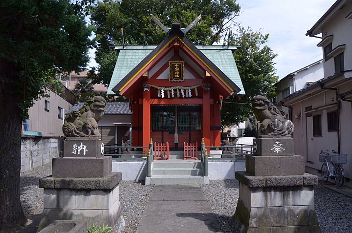 東急多摩川線「矢口渡」駅より西へ徒歩10分程の所に鎮座しています。参道が駐車場となっています。狛犬台座の社紋は同じ矢口の新田神社と同じです。新田氏の家紋は「大中黒・新田一つ引(おおなかぐろ ・にったひとつびき)」。