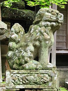 | 拝殿前、昭和8年生まれの出雲丹後狛犬 狛犬の拡大写真はこちらで |
