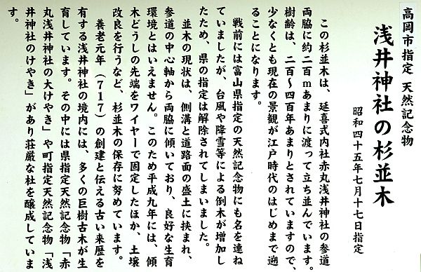 尚、延喜式内・越中国礪波郡・浅井神社の論社は2社あり、高岡市石堤にも同名社が鎮座しています。