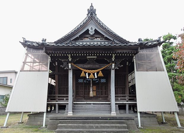 この神社は、富山地方鉄道・不二越上滝線・新庄田中駅の北北東1km程の辺り、上冨居公園のすぐ東側に鎮座しております。