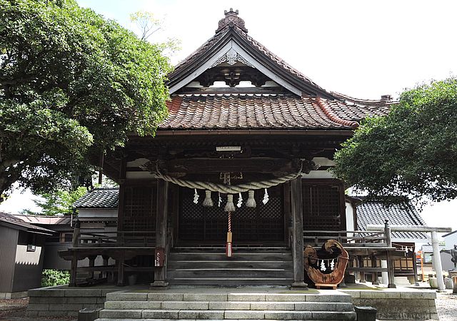 拝殿には奉納の絵馬が多い。なかでも応真斎松浦守美の描く源義経の海士ケ瀬の故事が有名である。