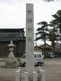 神社入口と社号標。と言っても道路と境内と塀や玉垣で仕切られている訳ではありません。