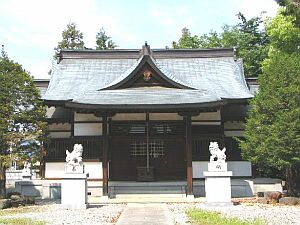 この神社は地図には記載されていません。市道303号線が中央高速を跨いでいる直ぐ南に鎮座しています。道路の拡張で社地が移動させられたのか、社地も社殿もとても綺麗でした。御坂町にも同名の神社がありますが、どういう関係があるのでしょうか。この神社も入り口には注連柱が建ち、境内に両部鳥居が建っています。この注連柱に架かっている棒状の注連縄が変わっていて面白く思いました。
